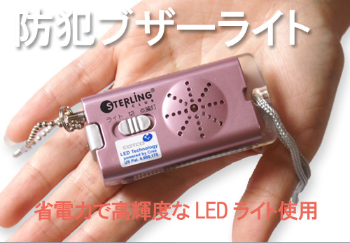 ピンを引き抜くと105dB(距離30cm)の大音量ブザーが鳴り、赤色灯が
