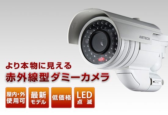 赤外線を多数搭載した最近流行の口径の大きいカメラをモデルにした本格的なダミーカメラ。 カメラカバーが防水機能の役割をしており、屋内、屋外でも使用可能です。 最新モデルの迫力ある大きさでコストパフォーマンスに優れており、お手軽な防犯対策としてお勧めです。
