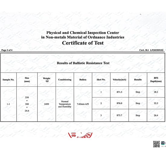 防弾レベル4 最新のシリコンカーバイトを使用した防弾板重量は約2.5g以下