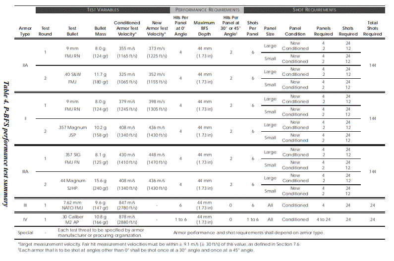 NIJの防弾レベル一(NIJ-STD-0101.06)はこちらをご覧下さい。
